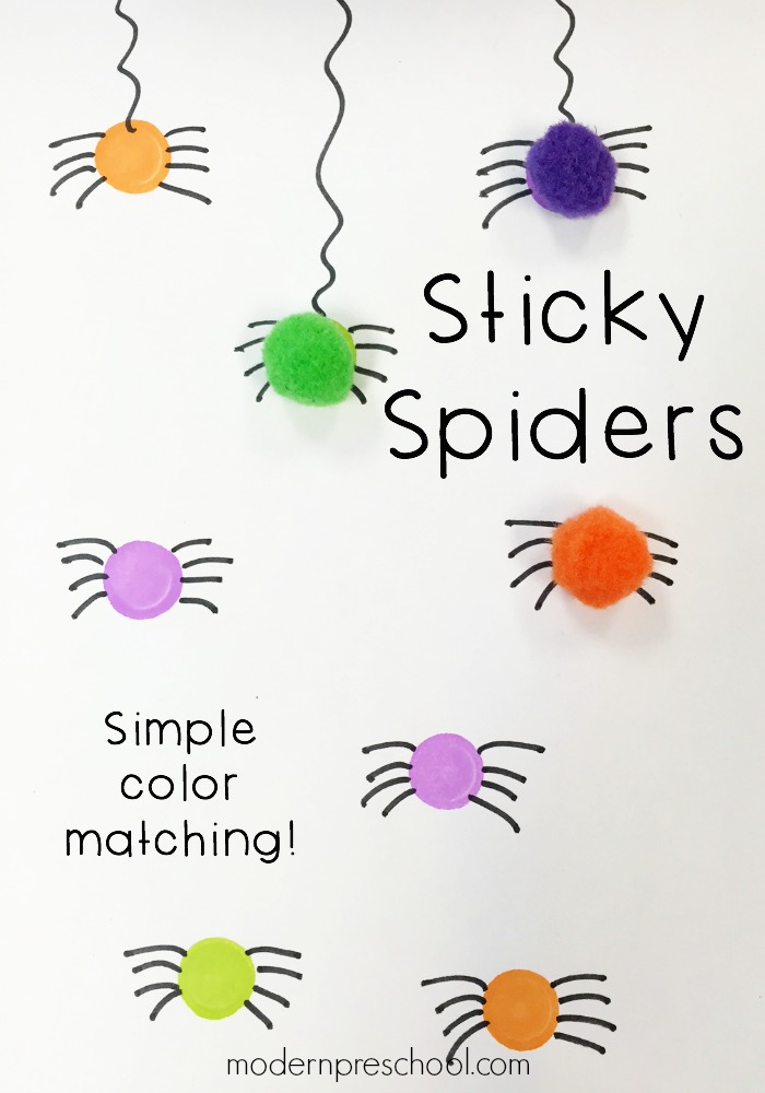 Practice color matching and strengthen fine motor skills with these fun {and reusable!} sticky spiders!
