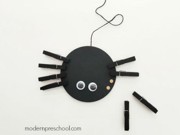 Glue the hole punched dots on to the spider. I glued 4 on each side leaving enough room in between for the clothespins to fit on easily.